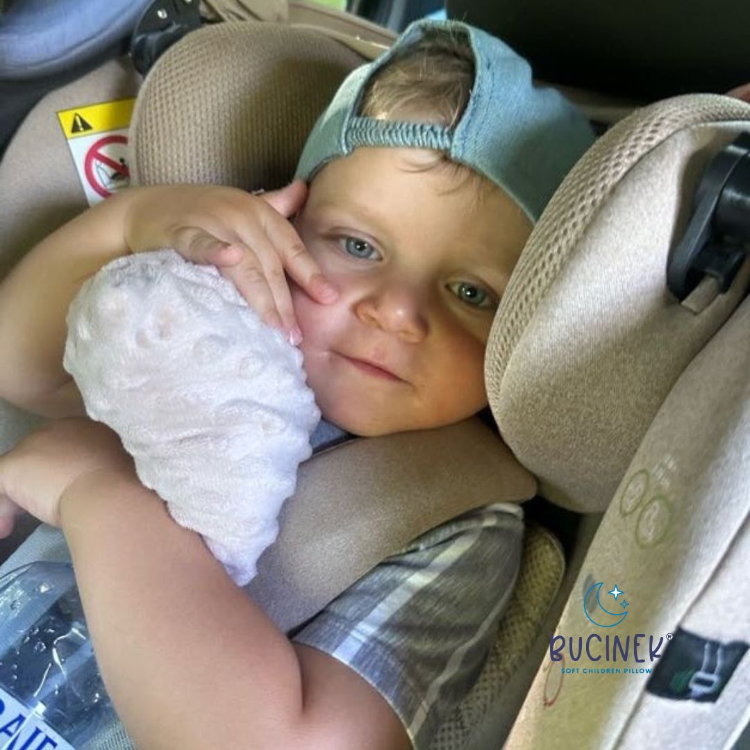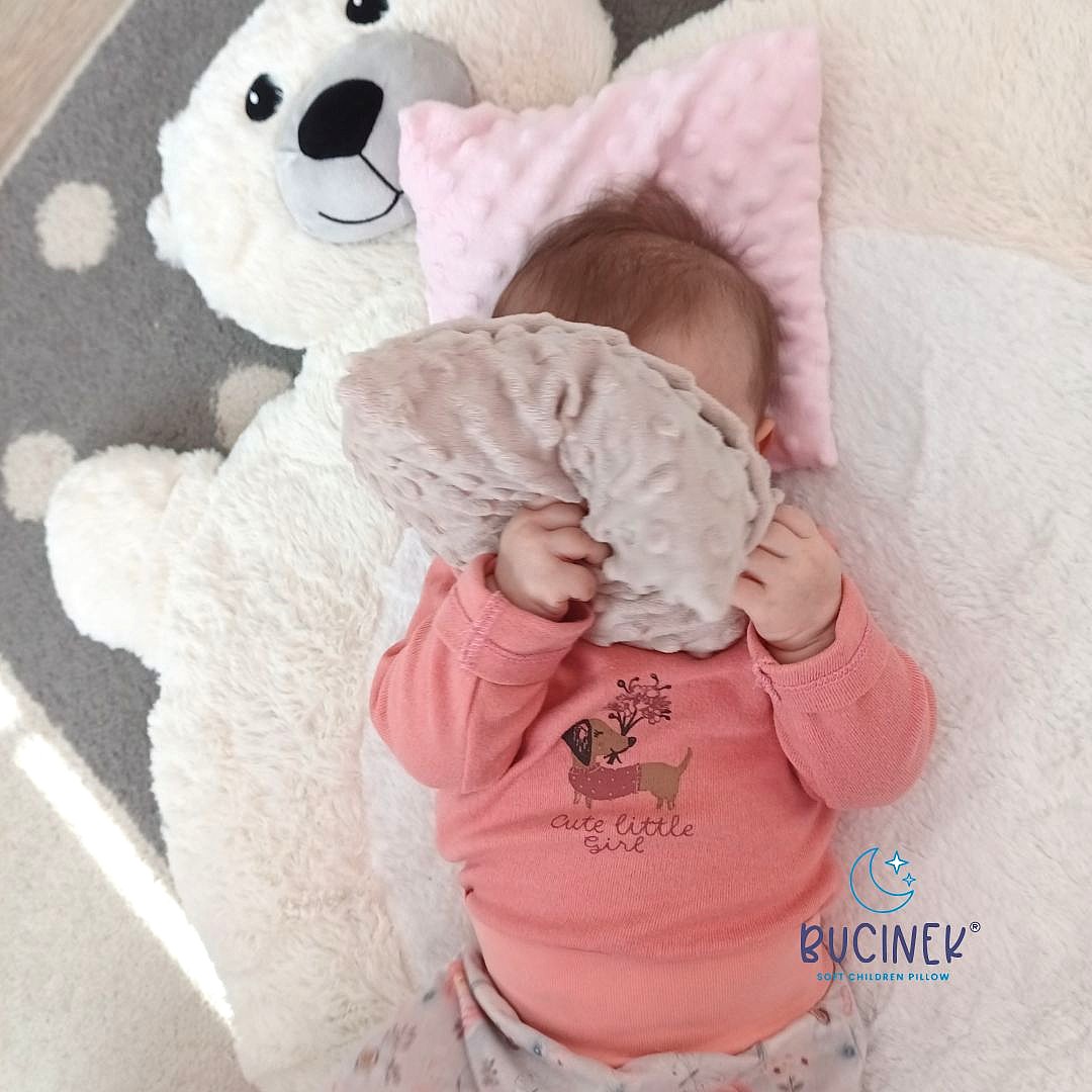 Bucinek je velmi hebký a děti se s ním přirozeně mazlí a díky velikosti trénují i úchop rukou.